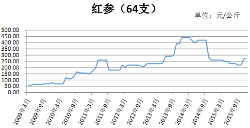 2009年至2015年人參產(chǎn)品的價格變動趨勢