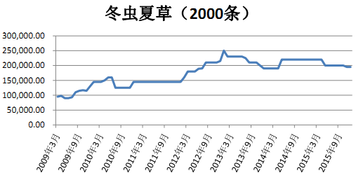 2009年至2015年冬蟲夏草的價格變動趨勢