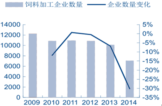 全國飼料加工企業數量及變化(單位:家)