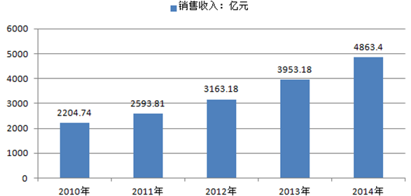 2010-2014年中國肉制品加工行業規模以上企業銷售收入(億元)