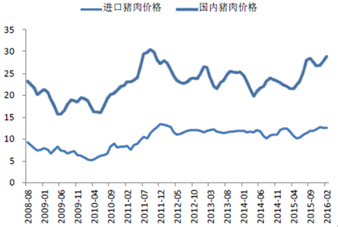 2008-2016年國內外豬肉價格走勢圖