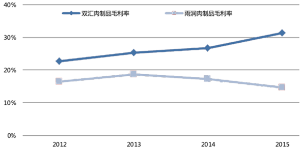 行業龍頭雙匯和雨潤的肉制品業務毛利率水平