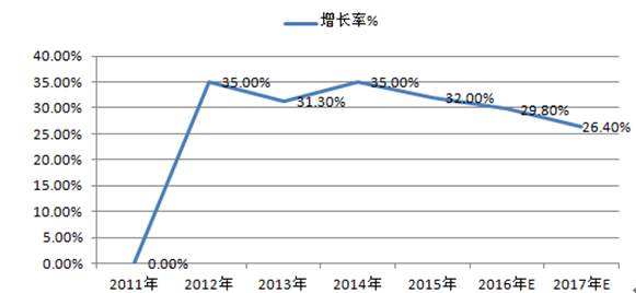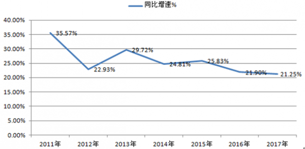2011-2017年出口 B2C電商規(guī)模增速