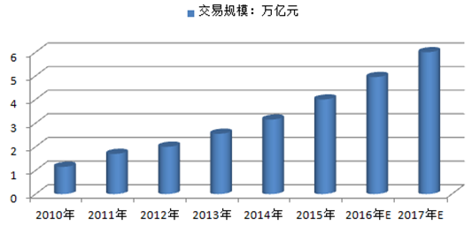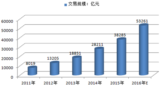 2011-2016年中國網(wǎng)絡(luò)零售市場(chǎng)交易規(guī)模