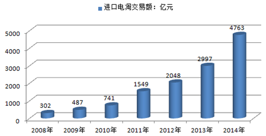 2008-2014年中國跨境進(jìn)口電商交易額規(guī)模