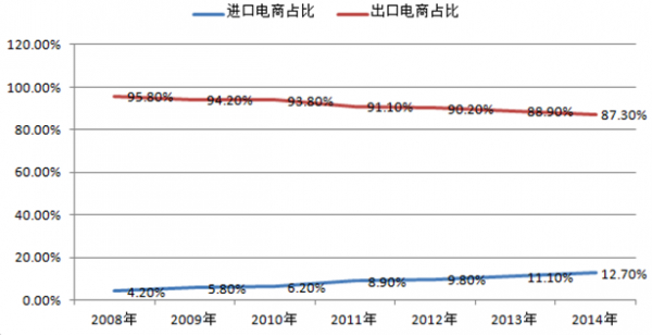 中國跨境進(jìn)出口電商占比