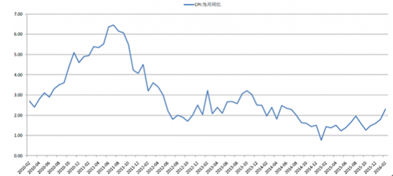 2010-2016年中國CPI當(dāng)月同比增速