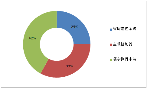 目前我國智能家居市場渠道主要通過房地產商和系統集成商進行銷售,也就是工程渠道銷售,從統計數據來看,通過工程渠道的銷售額占比達到80%,通過零售渠道的銷售額占比為20%左右。這充分說明,很少有消費者會主動通過零售渠道購買智能家居設備,特別是如果只能家居設備的易用性又不高的情況下,消費者更加不愿意購買。在樓宇行業中,BAS應用較為普遍,在一些中高端寫字樓、商業住宅、學校教學樓、圖書館等領域都有相應產品,BAS市場占整個樓宇自動化市場5%左右。具體到產品,樓宇行業應用的BAS控制系統按產品劃分主要包括樓宇執行末端、客房自控系統和主機控制器,由于整個BAS控制系統的核心是溫控部分,所以樓宇執行末端在BAS中的應用比例最高,達到42%,其次是主機控制器,產品的銷售比重占整個BAS的33%,最后是客房溫控系統,占整個BAS銷售額的25%。