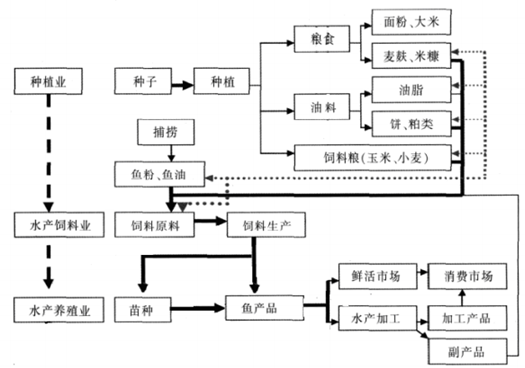 水產(chǎn)飼料上下游重要關(guān)聯(lián)產(chǎn)業(yè)結(jié)構(gòu)圖
