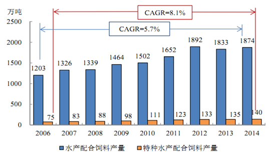 2006-2014 年特種水產(chǎn)配合飼料發(fā)展情況