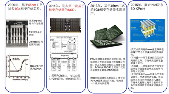 2009 年基于 45nm 工藝制備1Gb 相變存儲(chǔ)器芯片; 2011 年發(fā)布第一款基于相變存儲(chǔ)器的 SSD;2013 年基于 45nm 工藝 1Gb 相變存儲(chǔ)器芯片實(shí)現(xiàn)量產(chǎn);2015 年聯(lián)合 Intel發(fā)布 3D Xpoint。