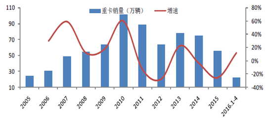 今年重卡市場增長的主要原因在于:第一是政策原因,2015 年1 月1 日柴油車國四排放標準全面實施,導致2014 年四季度出現一定程度的提前購買,拉低了2015 年的重卡銷量,進而致使2015 年上半年銷量基數較低,為2016 年上半年的增長奠定了基礎。第二,增長主要依靠物流車尤其牽引車的拉動,工程車市場需求仍然較弱。牽引車的增長主要是受國內物流市場的拉動,上半年盡管固定資產投資增速較低,但是國內消費增長比較平穩,帶動了物流車的更新換代;再加上400 馬力以上大馬力牽引車走俏,也在一定程度上拉動了老用戶的換車潮。
