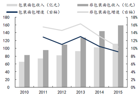 相關數據顯示,近五年非包裝面包的銷售增長一直快于包裝面包的增長速度。非包裝面包相對包裝面包更新鮮,由此可以看出人們對新鮮面包的需求越來越大。
