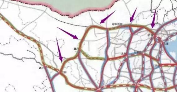 主要包括北京至呼和浩特至銀川至蘭州。這條高鐵線路處于待開工狀態。(上圖中箭頭所指的方向)