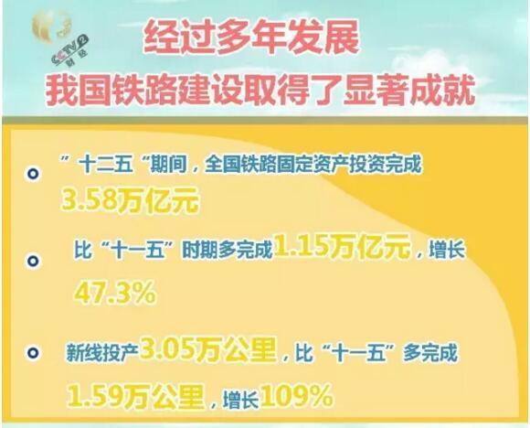 尤其是“十二五”期間,鐵路建設創造了歷史最高水平,全國鐵路固定資產投資完成3.58萬億元,比“十一五”時期多完成1.15萬億元,增長47.3%;新線投產3.05萬公里,比“十一五”多完成1.59萬公里,增長109%,是歷史投資完成最好、投產新線最多的5年。目前,我國鐵路運輸量穩居世界第一。
