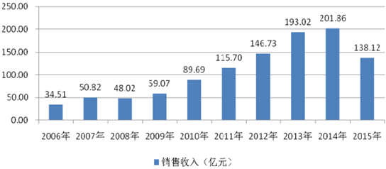 2006-2015 年我國制藥裝備行業銷售收入情況