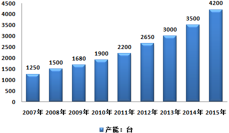 2007-2015年中國水平定向鉆機行業(yè)產能情況