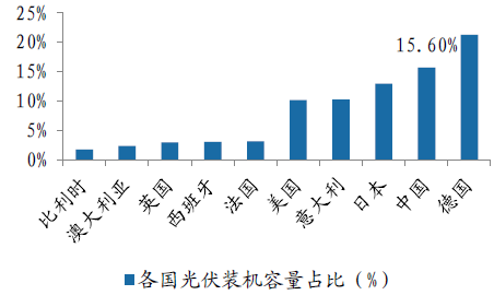 2014年世界各國光伏裝機容量占比