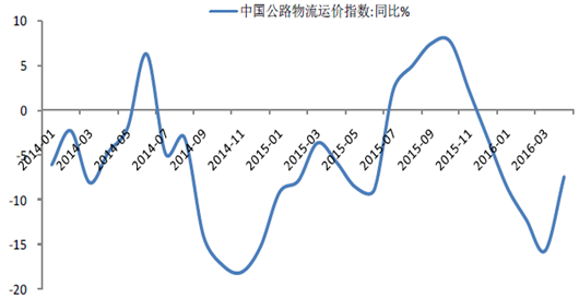 2005-2016年中國公路貨運量和公路貨物周轉量增速