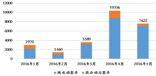 2016 年 1-5 月新能源客車產量