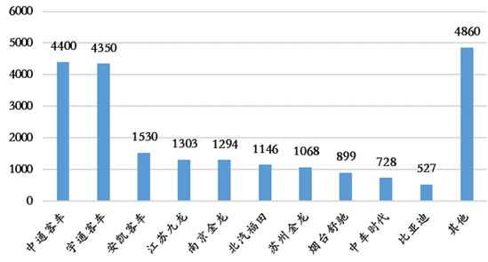 2016年1-5月純電動客車銷量排行前五企業較去年有所變化,2015年排名第二位的南京金龍、排名第四位的蘇州金龍和排名第五位的比亞迪今年排名均出現下滑,堅持走純電動新能源客車路線的中通客車以 4400 輛躍居第一,客車龍頭宇通客以 4350 萬輛 排名第二。安凱客車、江蘇九龍、煙臺舒馳和中車時代今年前五月份上升勢頭較為明顯,廈門大小金龍受到“騙補”核查影響較大,跌出前十名,同樣出現下滑的還有珠海廣通。