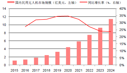 2015~2024年國內民用無人機市場十年增長曲線