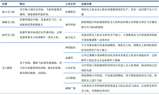 軍用無人機分類及代表上市公司
