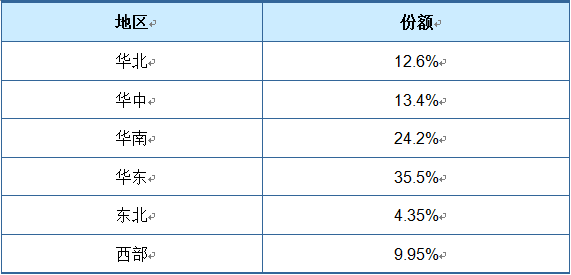 核心提示:華東地區是我國無線電通訊模塊最大的消費市場,2015年華東地區無線電通訊模塊市場占整體市場的35.5%;其次是華南地區,占24.2%;華北地區占12.6%。2015年無線電通訊模塊市場消費區域結構:%資料來源:公開資料整理華東地區是我國無線電通訊模塊最大的消費市場,2015年華東地區無線電通訊模塊市場占整體市場的35.5%;其次是華南地區,占24.2%;華北地區占12.6%。