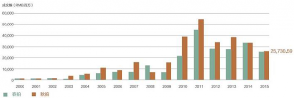 核心提示:一、中國藝術品拍賣市場現狀分析藝術品拍賣市場呈現出明顯的季節性,每年春秋兩次拍賣貢獻全年大部分收入。按照行業慣例,幾乎所有的藝術品拍賣行每年都會著重舉辦“春拍”與“秋拍”兩場拍賣會,而這兩一、中國藝術品拍賣市場現狀分析