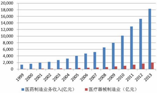 我國醫(yī)療器械與藥品市場規(guī)模對比,發(fā)展非常滯后