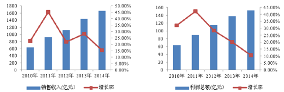 我國醫(yī)用耗材銷售收入及增長率情況 我國醫(yī)用耗材利潤總額及增長率情況