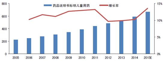 2005-2015年中國兒童用藥市場規模