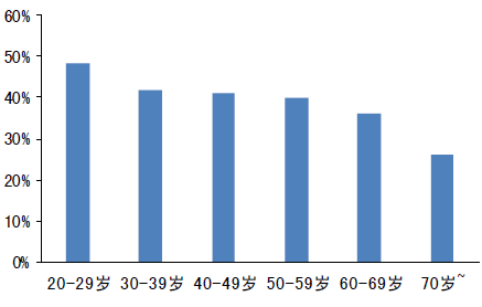20歲以上各年齡組參加體育鍛煉人數百分比