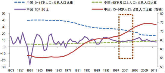 中國人口分年齡占比及GDP增速