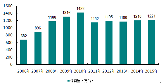 2006-2015年全國網吧市場終端保有量