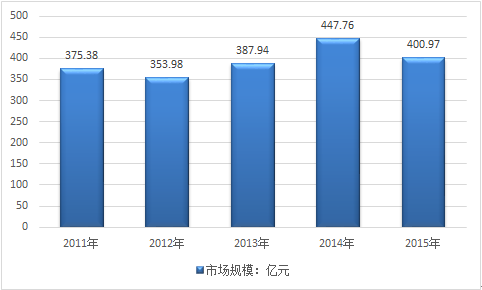 2011-2015年我國網吧市場規模統計圖