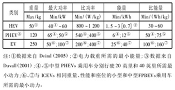 由于不同類型新能源汽車中,車用動力電池的使用方式有較大區別,因此對于其性能要求有較大區別。HEV有汽油發動機作為動力來源,更強調加速性能和爬坡能力,因此更注重電池的比功率(要求高達800一1200W/kg);PHEV和EV完全以電池作為動力,更強調充電后的續駛能力,因而更關注電池的比能量(要求達到100一160Wh/kg)。