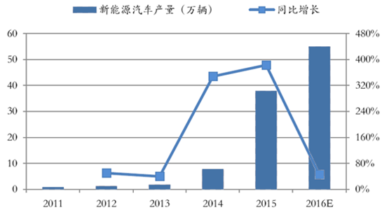 近年來,我國新能源汽車中使用鋰離子電池比例不斷升高,鋰電池市場空間廣闊。按照新能源汽車發展規劃路線,2015年國內純電動汽車銷量達到50萬輛,混合動力占全部汽車銷量的30%;2020年,純電動汽車將突破500萬輛,以混合動力為代表的節能汽車達到全部汽車銷量的75%。