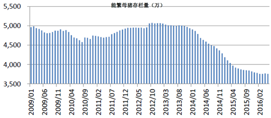 2009-2016年中國能繁母豬存欄量