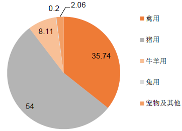 目前我國主要的強(qiáng)制免疫招標(biāo)的疫苗有四種:口蹄疫,禽流感,豬藍(lán)耳病和豬瘟。2015 年動物疫苗市場規(guī)模約100 億,其中強(qiáng)免疫苗占57 億,非強(qiáng)免疫苗占43 億。其中豬用疫苗為54 億元,禽用的為35 億元,牛羊用的為8 億元,寵物等其他2 億。豬疫苗中強(qiáng)免疫苗占到了整個豬用疫苗的67%,禽用強(qiáng)免苗占據(jù)了禽用市場的40%。