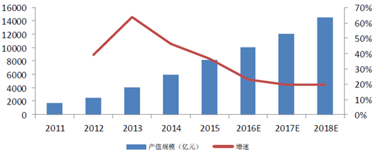 2011-2018年我國(guó)云計(jì)算產(chǎn)業(yè)產(chǎn)值規(guī)模