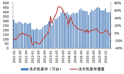 2011-2016年中國洗衣機庫存及增速
