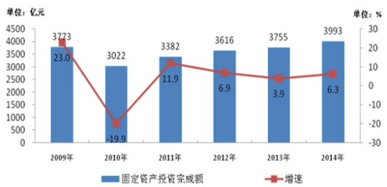 2009-2014 年中國電信運營商固定資產投資完成額