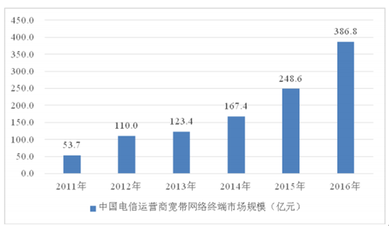 2011-2016 年中國電信運營商寬帶網絡終端設備市場規模