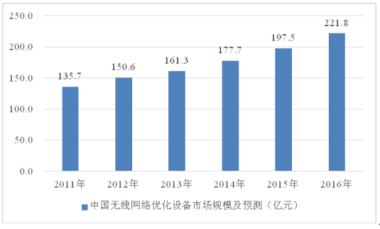 2011-2016 年中國無線網絡優化設備市場規模及預測
