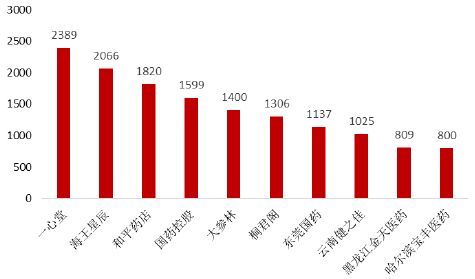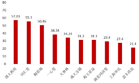 2013年中國醫藥零售企業銷售總額TOP10(億元)