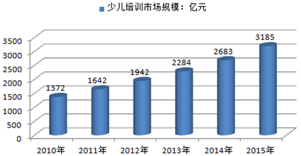 2010-2015年中國少兒培訓市場規模