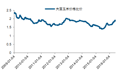 種植結構調整有望提升國產大豆種植面積與產量。國家層面已經開始農業供給側結構性改革,計劃到 2020 年,調減玉米種植面積 5000 萬畝,其中 2016 年力爭調減 1000 萬畝;2016年 4 月農業部印發《關于促進大豆生產發展的指導意見》,提出到 2020 年大豆面積達到 1.4 億畝,比目前增加 4000 萬畝。由于大豆種植主要受比較收益的影響,而由于玉米價格大跌、臨儲政策取消的影響,農民種植玉米的意愿也有所降低,預計這將扭轉國產大豆播種面積減少的態勢。