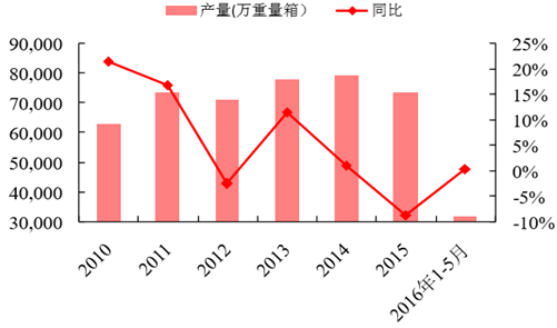 2016年上半年尤其是 2 月份之后,浮法玻璃價(jià)格逐步回升,由于去年價(jià)格基數(shù)較低,企業(yè)上漲價(jià)格意愿較強(qiáng); 更主要的是由于上半年下游需求帶動(dòng),1-5 月,全國(guó)房地產(chǎn)開發(fā)投資同比增長(zhǎng) 7.0%,汽車產(chǎn)量同比增長(zhǎng) 5.6%, 銷量增長(zhǎng) 6.96%,較好地拉動(dòng)上游玻璃的需求。同時(shí)供給端有一定的收縮,上半年產(chǎn)能同比下降 2%左右。由于 邊際供需得到了改善,價(jià)格才得以上漲。但縱觀全年,短時(shí)間產(chǎn)能過剩的局面短時(shí)間內(nèi)難以發(fā)生根本性的變化。