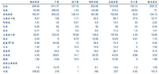 國(guó)內(nèi)玉米供需平衡表(百萬噸)